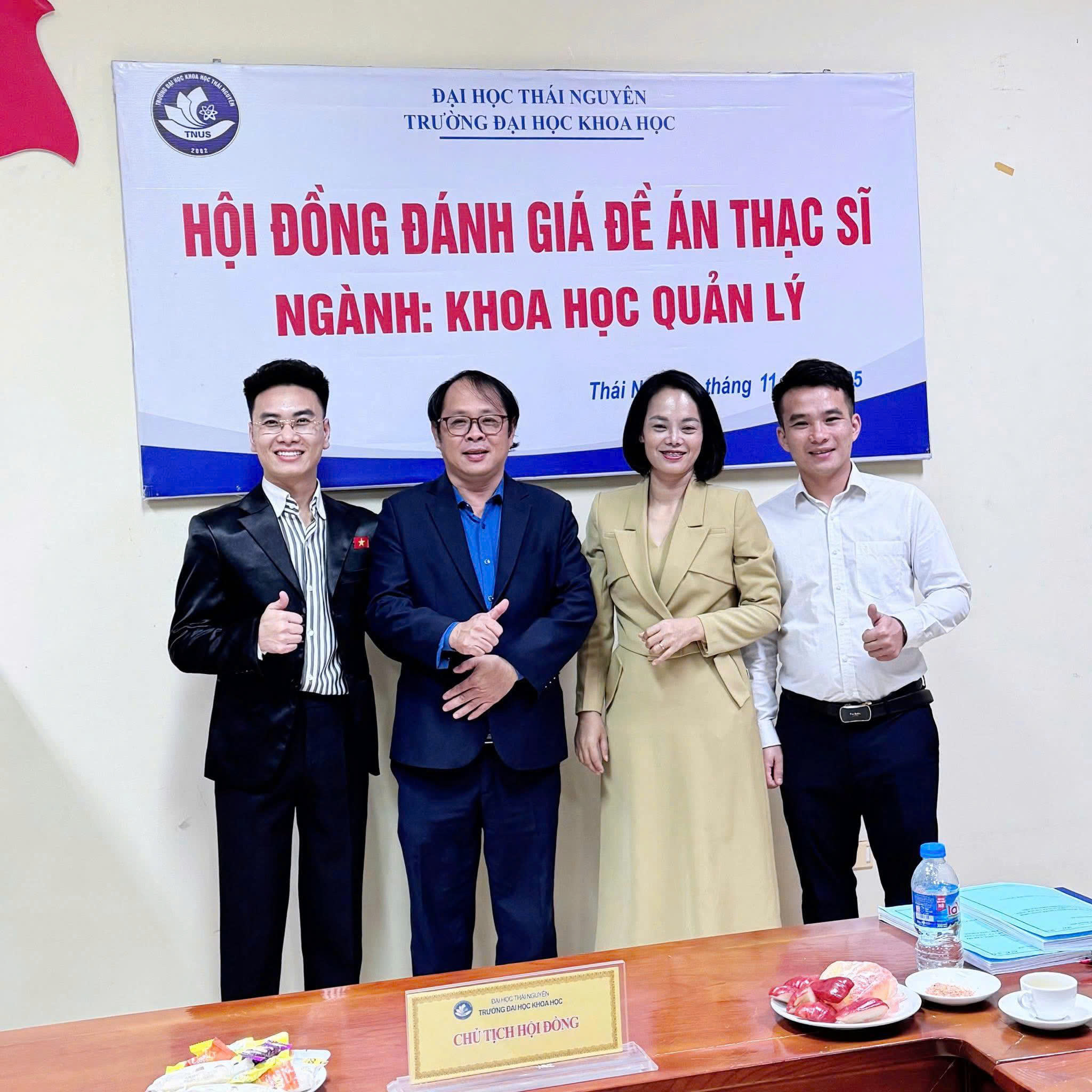 Chiều ngày 23/11/2025, Khoa Khoa học Quản lý – Trường Đại học Khoa học, Đại học Thái Nguyên đã tổ chức buổi bảo vệ đề án thạc sĩ ngành Khoa học quản lý cho 5 học viên cao học. Buổi bảo vệ được tiến hành trang trọng, đúng quy định, với sự tham gia của Hội đồng gồm các chuyên gia, giảng viên có uy tín trong lĩnh vực quản lý.